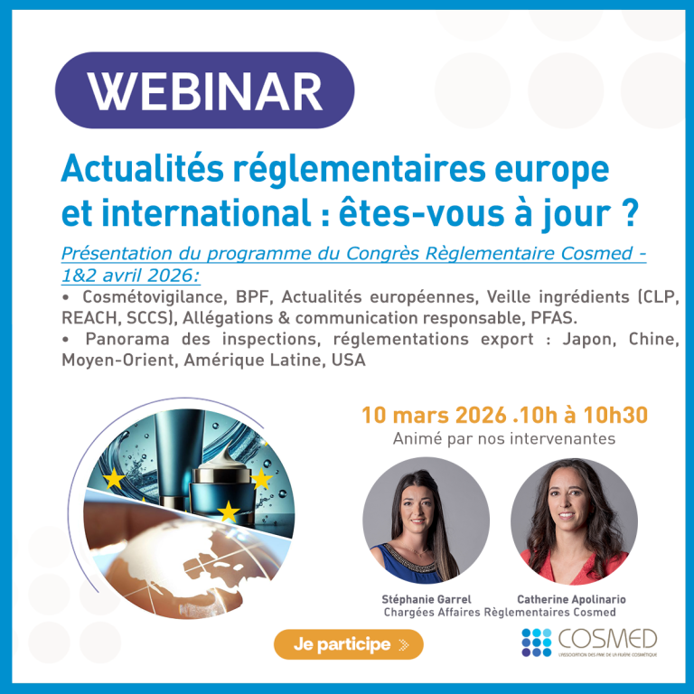 Webinar de présentation du programme du Congrès Règlementaire Cosmed – 1&2 avril 2026